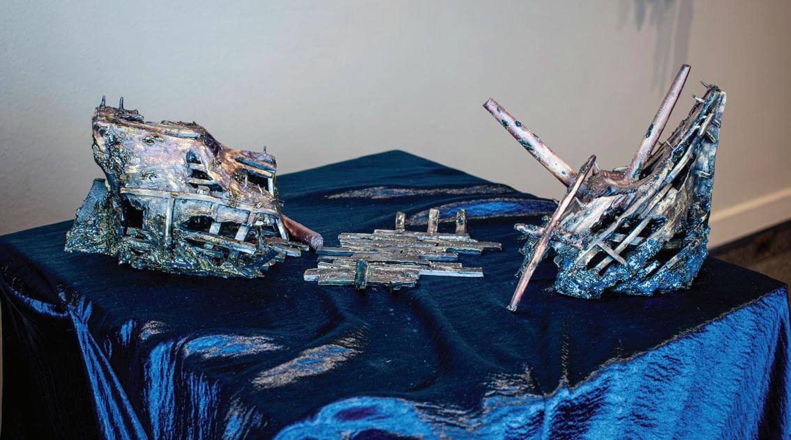 Zydlo’s Sunken Series exhibit is available to view at Florida Public Archeology Network’s Destination Archeology Resource Center and showcases three pieces: Silver Coins, Galleon and Storage Vessel. All of the pieces were hand-built with stoneware clay because of its versatility and durability.