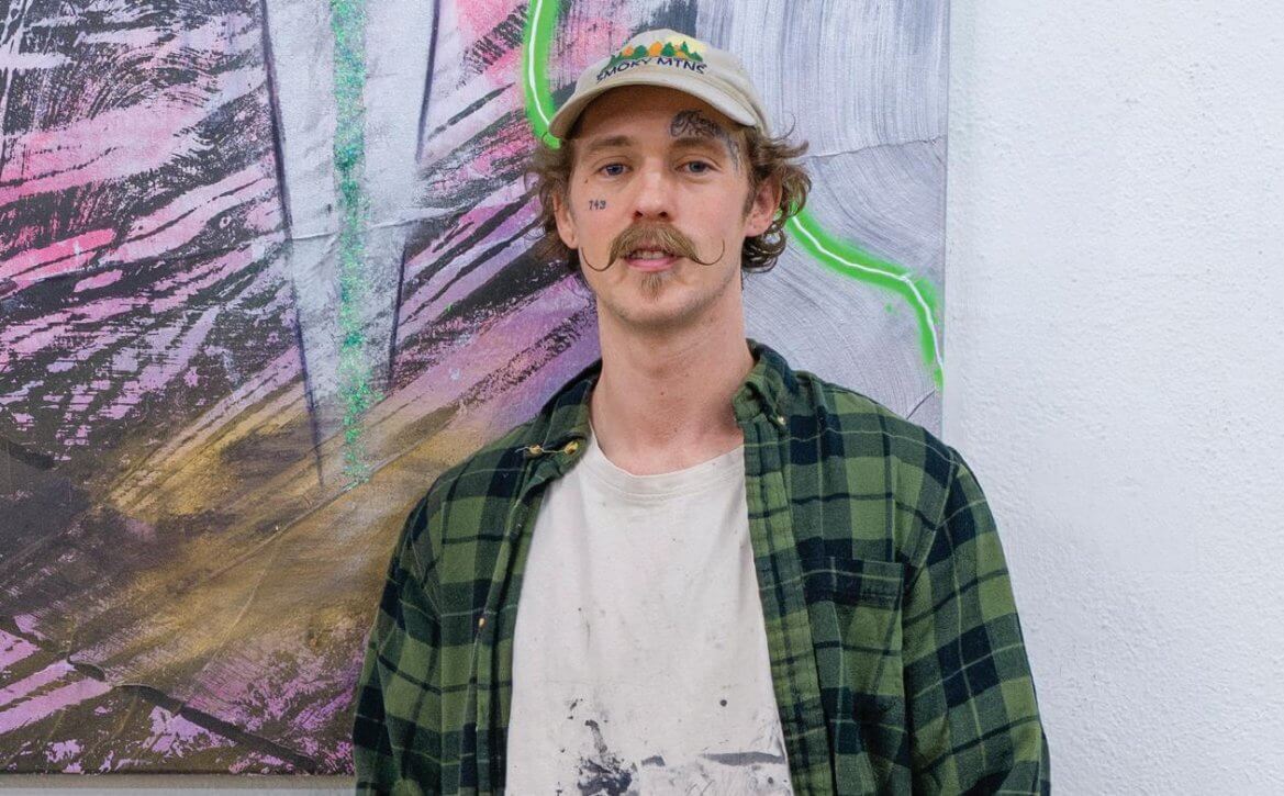 Ryan Mayall is a self-taught artist whose journey into the art world began with poetry, but he ventured into another outlet of artistic expression with abstract painting in 2016. He was intrigued by a friend’s painting and the way it lent itself to interpretation and imagination. In turn, what began as an experiment with craft paint and repurposed canvas led to a career in fine art creation and exploring spiritual themes and cathartic release through contemporary abstract expressionist painting.