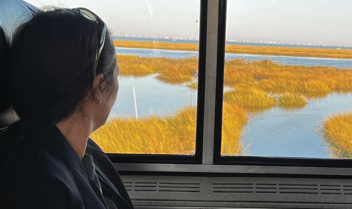 We reach the area at sunset and admire a glowing sky of orange across the verdant green of the marsh. On the return trip, I experience this same stretch in full daylight, bringing fantastic views of a natural bounty of wading birds, fish and alligators, all from the comfort of an air-conditioned rail car.