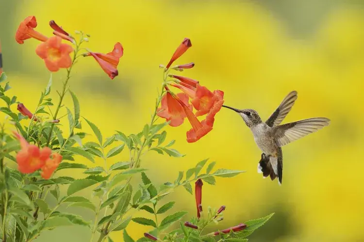 Hummingbirds are attracted to plants with brightly colored or tubular blossoms, but they don’t feed on all flowering plants. They tend to feed in the early mornings and evenings, before settling in for the night.