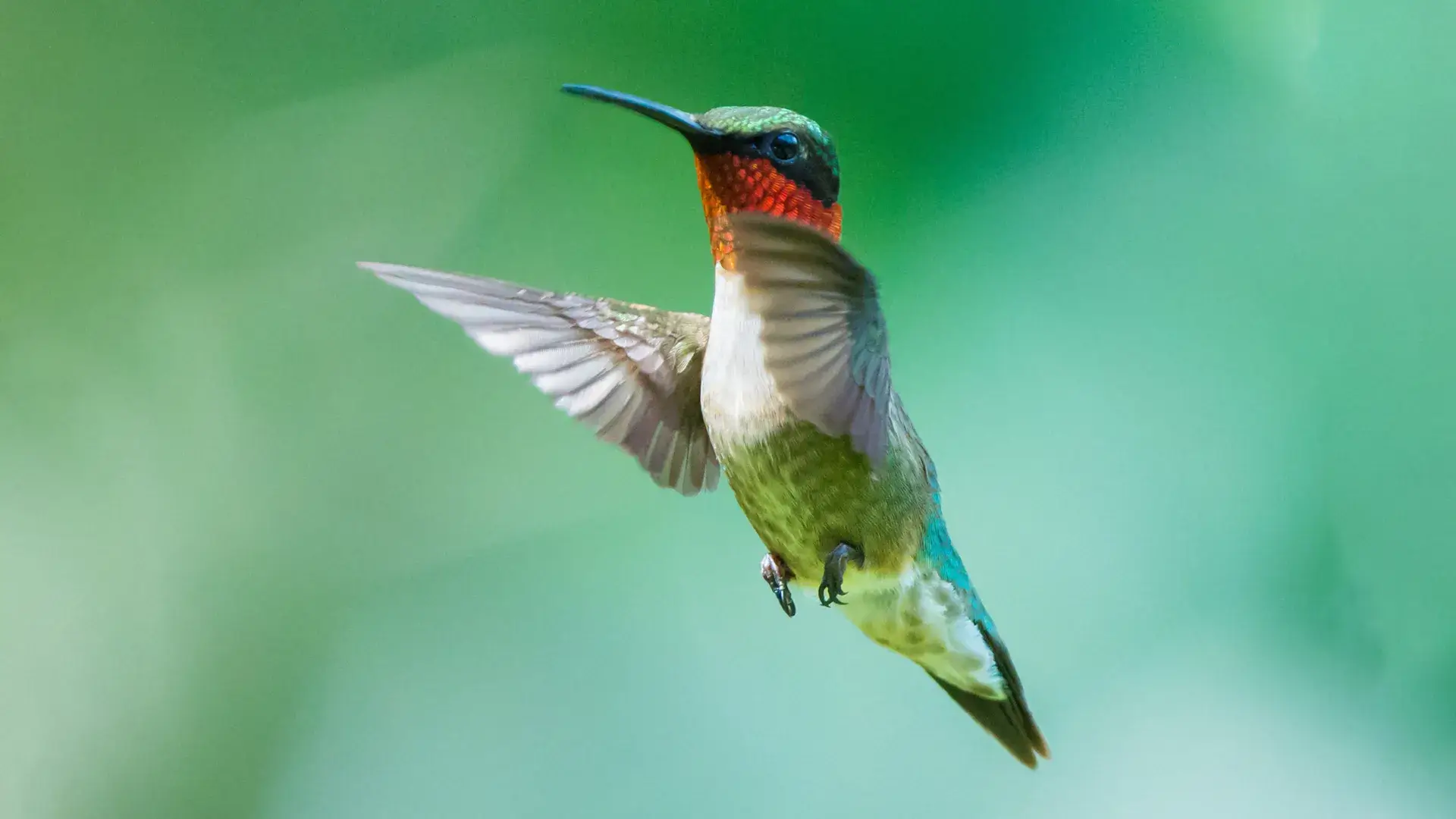 Only three inches long and weighing as little as a penny, the ruby-throated hummingbird earned its name from the male’s brilliantly colored throat feathers, which contain air bubbles that give off an iridescent red tone in full light.