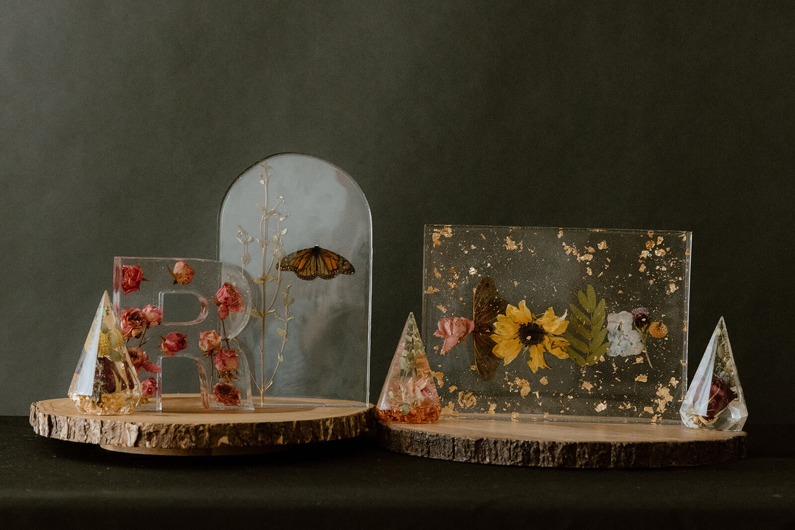 For as long as I can remember, I’ve been interested in art. I get emotional just thinking about it. Creating has always been something that I’ve done to express myself through the tough times and the best times. During the height of the pandemic, I was churning out new art constantly just to cope. That period of time is where my love for resin came from. The media that I most often use are resin and flowers. I used to always have trouble describing what type of art I created until my husband and I coined the terms “floral flare” and “whimsy-ware.” No two pieces are alike.