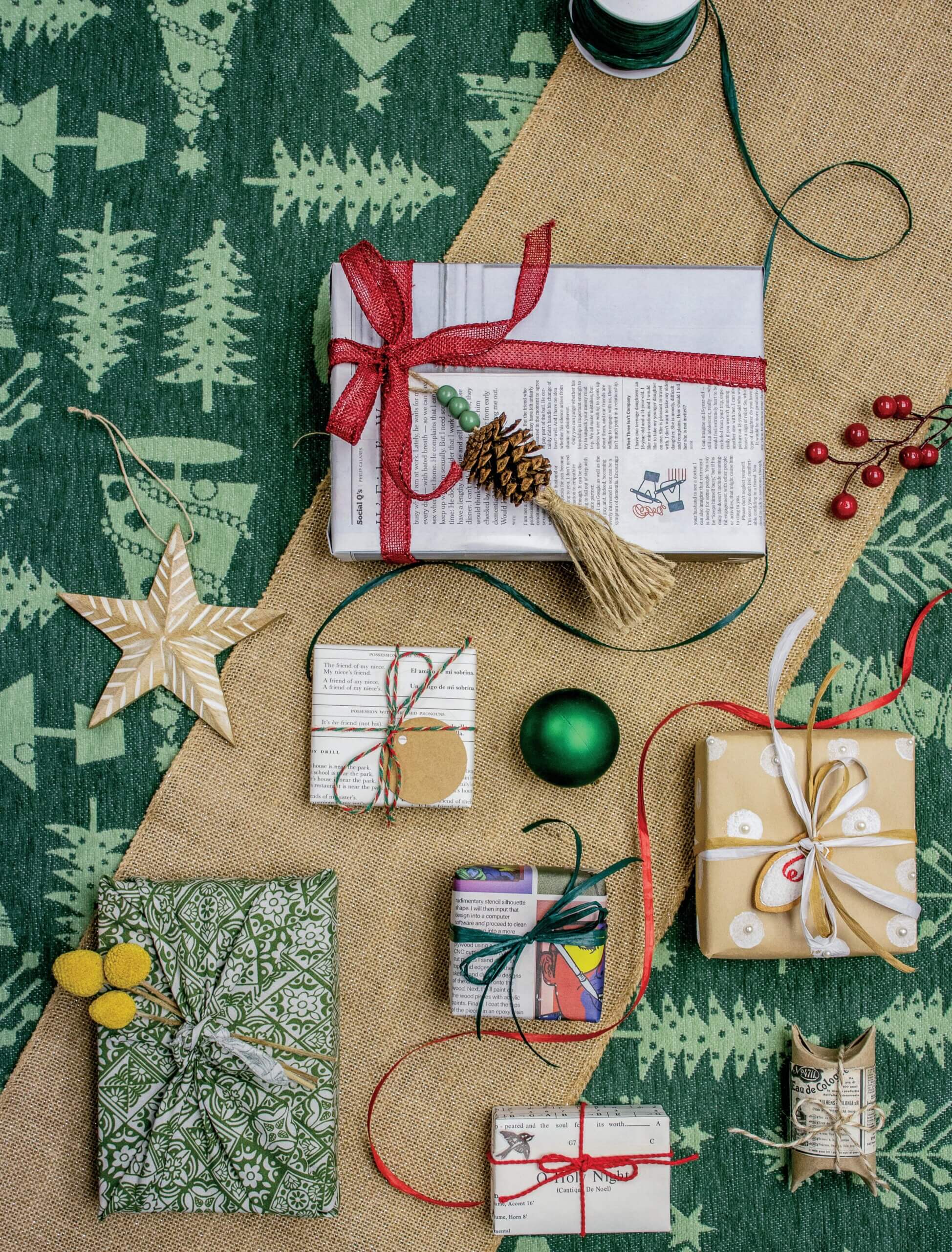 Fortunately, there are tons of eco-friendly gift wrap options out there that’ll still give you that gorgeous under-the-tree look, while minimizing the impact on the planet. Think recyclable paper, reusable fabrics, vintage finds or even a gift wrap that’s part of the gift itself. Dress up your packages with baker’s twine, raffia or sprigs of festive greenery to add a little panache. Here are some of our favorite eco-friendly gift-wrapping options to make this holiday truly green.